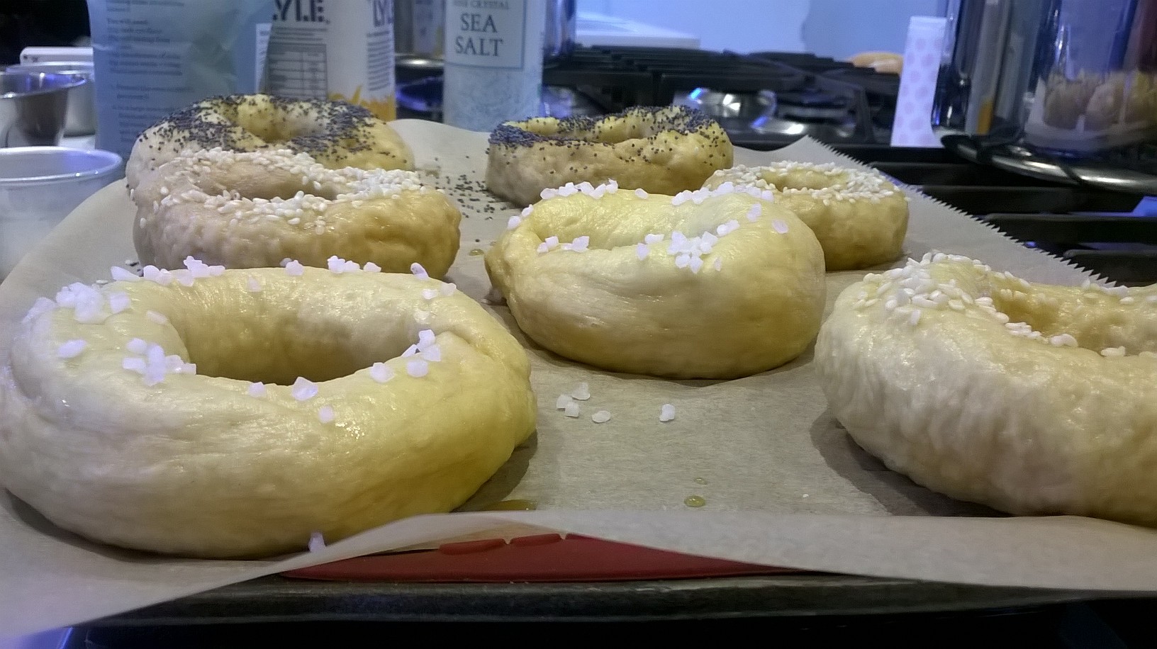 Lesson four was that if you make a mistake with the quantity of flour – putting too little in and the dough is already formed, you can work more flour into it. We had to halve the amounts of ingredients in our bagel mixture and as I am not good with numbers I put in 25g less flour, though I wasn’t the only one! None of us could understand why our dough was sticker than our chef’s, and when we realised the mistake, we were told to just add the amount on the work surface and slowly work the flour in, amazingly this worked and you would never know.