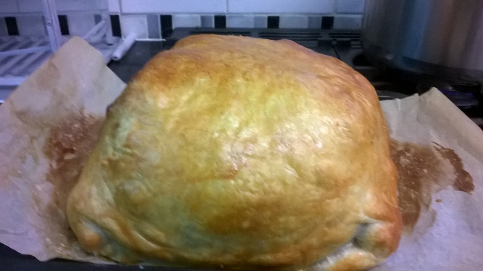 - Place in the oven on 180/190 for 30-45 minutes till pastry is crispy. Watch carefully to ensure no leakages happen.
